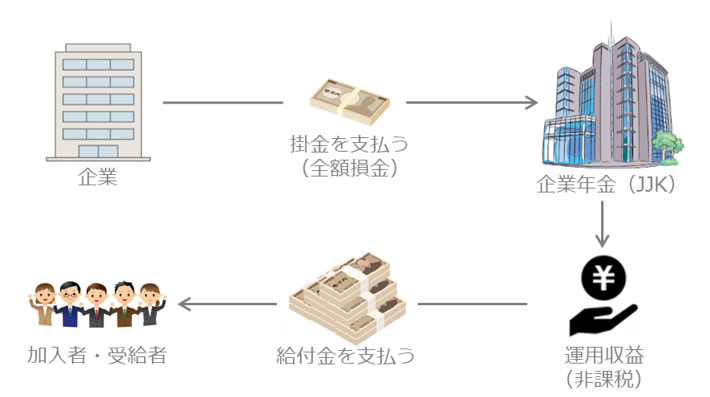 - 総合型(複数事業主制)の基金であるため、退職一時金の一部をJJKに移行することで、退職給付債務(PBO)の圧縮が可能です。