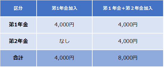 ・第2年金のみ加入の範囲から外れている方のJJK掛金相当額は、第1年金のみの4,000円となります。